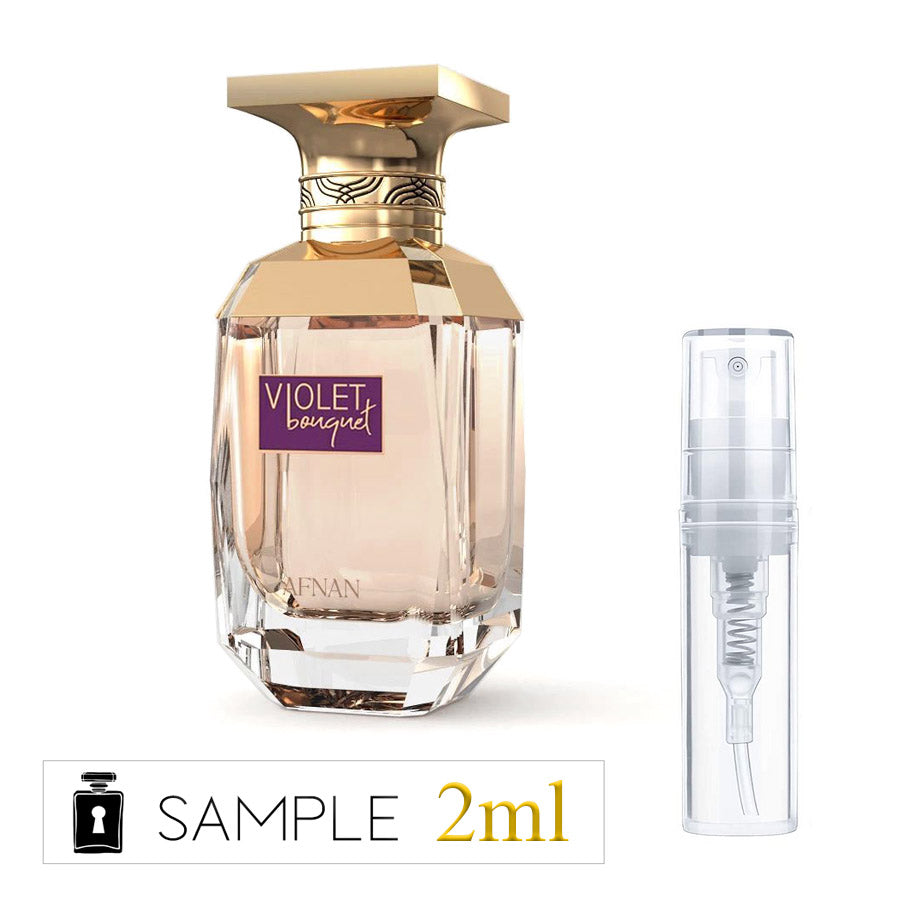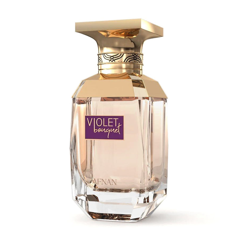 Afnan Violet Bouquet for Women is opened by tones of jasmine swaying in the waves of seduction, from the initial sweetness of fully-flowing white-blooming, intoxicating tufts of flowers, through still-flushed flower buds whose fragrance encircles earth and green with a blend of flowers and twig petals. tenderness with falling twilight, when jasmine lightly sleeps together with the intertwining bittersweet saffron, with undertones hidden in flashes of skin.